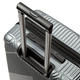Чемодан также оснащен выдвижной телескопической ручкой с фиксатором и регулировкой в нескольких положениях, двумя ручками и дополнительными ножками для удобного подъема и временной переноски, а также колесами с поворотом на 360°, обеспечивающими легкое передвижение во время путешествий.