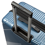 - Чемодан также оснащен выдвижной телескопической ручкой с фиксатором и регулировкой в нескольких положениях, двумя ручками и дополнительными ножками для удобного подъема и временной переноски, а также колесами с поворотом на 360°, обеспечивающими легкое передвижение во время путешествий.
