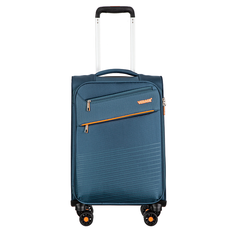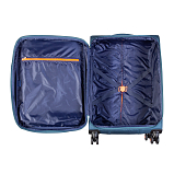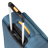Чемодан закрывается по периметру на двухстороннюю молнию. Оснащён верхней ручкой, четырьмя колёсиками 360°. Внутри чемодана - 1 отделения для одежды, 1 сетчатый карман на молнии, одна техническая молния с бегунком. Снаружи на передней стенке 2 кармана на молнии. Максимальная высота выдвижной ручки 58 см. Внутренний размеры: 49 х 33,5 х 19 см. Объем: 31 л. Вес: 1,750 кг.
