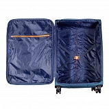 Чемодан закрывается по периметру на двухстороннюю молнию. Оснащён внутренним отделом максимальной вместимостью с перекрестными лямками и сетчатым карманом на молнии, четырьмя колёсиками с поворотом на 360°, верхней и боковой ручкой для удобства временного переноса. Снаружи на передней стенке расположены 2 кармана на молнии. Максимальная высота выдвижной ручки 34 см. Внутренний размеры: 68 х 46 х 25 см. Объём: 78 л. Вес: 2,500 кг.