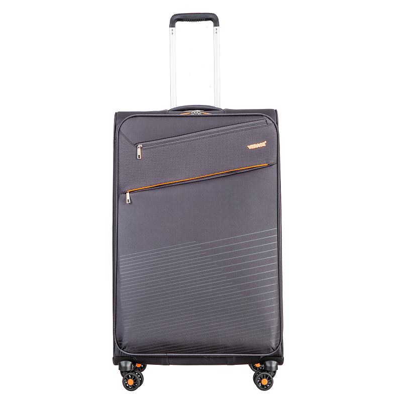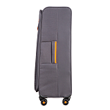 Чемодан закрывается по периметру на двухстороннюю молнию. Оснащён внутренним отделом максимальной вместимостью с перекрестными лямками и сетчатым карманом на молнии, четырьмя колёсиками с поворотом на 360°, верхней и боковой ручкой для удобства временного переноса. Снаружи на передней стенке расположены 2 кармана на молнии. Максимальная высота выдвижной ручки 34 см. Внутренний размеры: 68 х 46 х 25 см. Объём: 78 л. Вес: 2,500 кг.