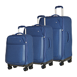 Комплект состоит из трёх чемоданов высотой 55, 69, 77 см, объёмом 46, 91, 121 л. и весом 2.6, 3.1, 3.8 кг. Все модели закрываются по периметру на двухстороннюю молнию, оснащены верхней ручкой, четырьмя колёсиками с поворотом на 360°, внутренним отделом для одежды и двумя карманом на молнии, снаружи на передней стенке два кармана на молнии, возможность увеличения чемодана на 20% (за счет наружней молнии), встроенный кодовый замок TSA