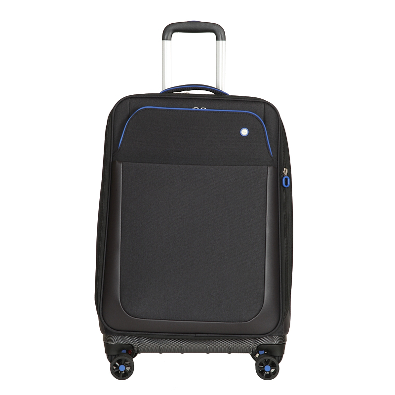 оснащён верхней ручкой, четырьмя колёсиками 360°