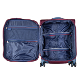 Внутри одно отделение для одежды, 2 кармана на молниях и одна техническая молния с бегунком. Закрывается по периметру на двухстороннюю молнию. С внешней стороны на лицевой стенке расположены 2 кармана на молнии и мультифункциональный карман на молнии с USB-зарядкой. Оснащён удобной верхней ручкой, четырьмя колёсиками с поворотом на 360°, возможностью увеличения объёма на 20% за счет внутренней молнии и встроенным замком с функцией TSA. Максимальная высота выдвижной ручки: 57 см. Объём: 44 л. Вес: 2,4 кг.