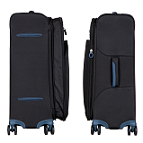 Чемодан объёмом 80 л., весом 3.1 кг. Закрываются по периметру на двухстороннюю молнию. Оснащен внутренним отделом для одежды и 2 карманами на молнии, встроенным кодовым замком TSA, верхней ручкой, четырьмя колёсиками с поворотом на 360°. Снаружи на передней стенке 2 кармана на молнии, возможность увеличения на 20% за счет внутренней молнии.