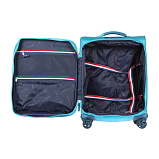 Чемодан объёмом 80 л., весом 3.1 кг. Закрываются по периметру на двухстороннюю молнию. Оснащен внутренним отделом для одежды и 2 карманами на молнии, встроенным кодовым замком TSA, верхней ручкой, четырьмя колёсиками с поворотом на 360°. Снаружи на передней стенке 2 кармана на молнии, возможность увеличения на 20% за счет внутренней молнии.