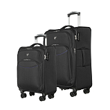 Комплект состоит из двух чемоданов высотой 69, 55 см. Объёмом 45, 27 л. Весом 3.300, 2.610 кг. Все модели закрываются по периметру на двухстороннюю молнию, оснащены верхней ручкой, четырьмя колёсиками с поворотом на 360°, внутренним отделом для одежды и сетчатым карманом на молнии, встроенным кодовым замком, снаружи на передней стенке два кармана на молнии, возможность увеличения чемодана на 20% (за счетвнутренней молнии). Максимальная высота выдвижной ручки 58, 47 см.