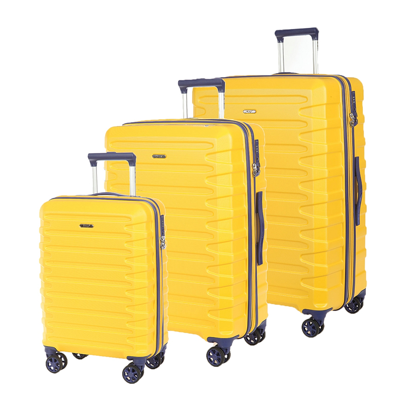 Комплект состоит из трёх чемоданов высотой 81, 69, 59 см, объёмом 127, 85, 53 л, и весом 5.3, 4.2, 2.75 кг