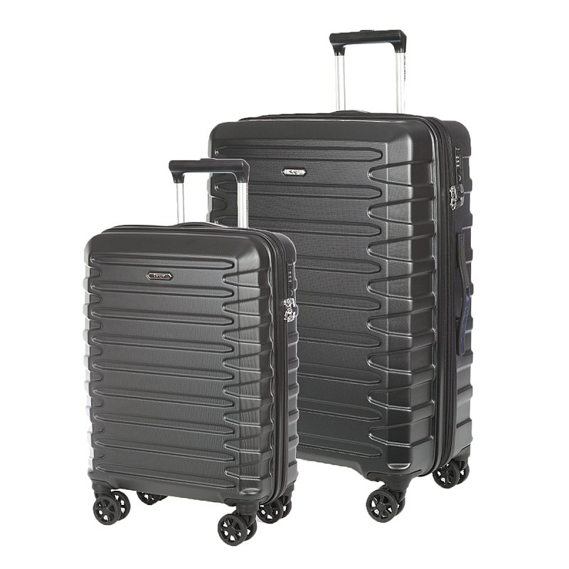 Комплект состоит из двух чемоданов высотой 69, 59 см, объёмом 85, 53 л, и весом 4.2, 2.75 кг