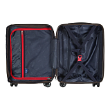 Закрывается по периметру на двухстороннюю молнию, оснащён верхней ручкой, прорезиненными бесшумными колесами с поворотом на 360°, внутри один отдел для одежды, один карман на молнии, одна техническая молния с бегунком, возможность увеличения объёма чемодана на 20% (за счёт молнии), встроенный кодовый замок TSA, максимальная высота выдвижной ручки 59 см, объём 35 л. Ввнутренний размер 48-38-19 см, вес 3,015 кг.