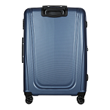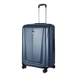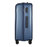 Закрывается по периметру на двухстороннюю молнию, оснащён верхней ручкой, прорезиненными бесшумными колесами с поворотом на 360°, внутри один отдел для одежды, один карман на молнии, одна техническая молния с бегунком, возможность увеличения объёма чемодана на 20% (за счёт молнии), встроенный кодовый замок TSA, максимальная высота выдвижной ручки 40 см, объём 103 л. Внутренний размер 68-49-31 см, вес 4,680 кг.