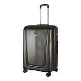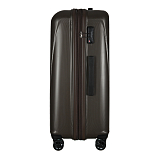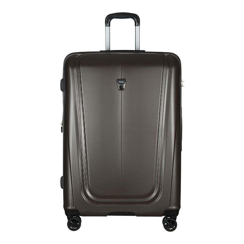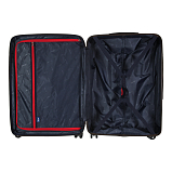 Закрывается по периметру на двухстороннюю молнию, оснащён верхней ручкой, прорезиненными бесшумными колесами с поворотом на 360°, внутри один отдел для одежды, один карман на молнии, одна техническая молния с бегунком, возможность увеличения объёма чемодана на 20% (за счёт молнии), встроенный кодовый замок TSA, максимальная высота выдвижной ручки 40 см, объём 103 л. Внутренний размер 68-49-31 см, вес 4,680 кг.