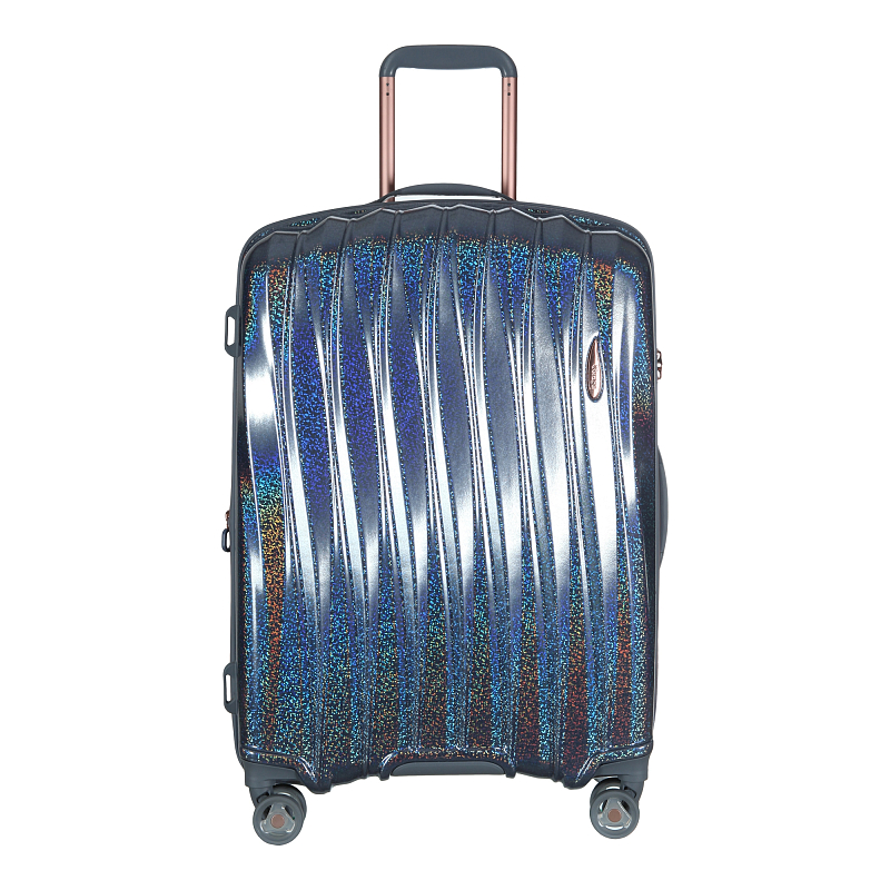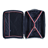 Закрывается по периметру на двухстороннюю молнию, оснащён верхней ручкой, прорезиненными бесшумными колесами с поворотом на 360°, внутри один отдел для одежды, один карман на молнии, одна техническая молния с бегунком, возможность увеличения объёма чемодана на 20% (за счёт молнии), встроенный кодовый замок TSA, максимальная высота выдвижной ручки 43 см, объём 84 л, внутренний размер 58-43-28 см, вес 3,835 кг.