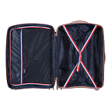 Закрывается по периметру на двухстороннюю молнию, оснащён верхней ручкой, прорезиненными бесшумными колесами с поворотом на 360°, внутри один отдел для одежды, один карман на молнии, одна техническая молния с бегунком, возможность увеличения объёма чемодана на 20% (за счёт молнии), встроенный кодовый замок TSA, максимальная высота выдвижной ручки 43 см, объём 84 л, внутренний размер 58-43-28 см, вес 3,835 кг.
