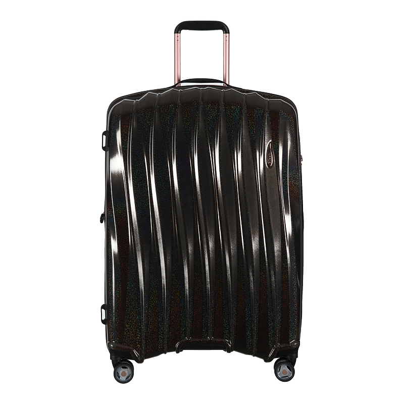 Закрывается по периметру на двухстороннюю молнию, оснащён верхней ручкой, прорезиненными бесшумными колесами с поворотом на 360°, внутри один отдел для одежды, один карман на молнии, одна техническая молния с бегунком, возможность увеличения объёма чемодана на 20% (за счёт молнии), встроенный кодовый замок TSA, максимальная высота выдвижной ручки 34 см, объём 127 л, внутренний размер 67-51-29 см, вес 4,075 кг.