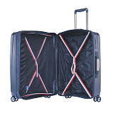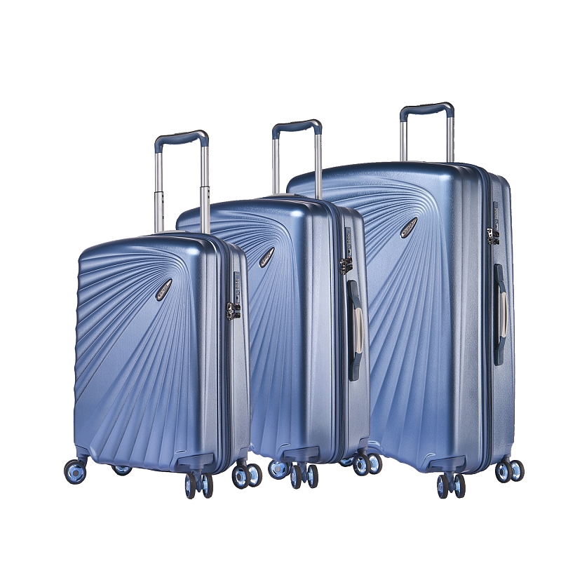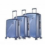 Комплект состоит из трех чемоданов высотой 76, 66, 55 см, весом 3,945, 3,220, 2,265 кг. Все модели закрываются по периметру на двухстороннюю молнию, оснащены верхней ручкой, прорезиненными бесшумными колесами с поворотом на 360°, внутренним отделом для одежды и карманом на молнии, возможность увеличения объёма чемодана на 20% (за счёт молнии), встроенный кодовый замок TSA, максимальная высота выдвижной ручки 37, 46, 56 см.