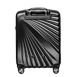 Чемодан закрывается по периметру на двухстороннюю молнию, оснащены верхней ручкой, прорезиненными бесшумными колесами с поворотом на 360°, внутренним отделом для одежды и карманом на молнии, возможность увеличения объёма чемодана на 20% (за счёт молнии), встроенный кодовый замок TSA, максимальная высота выдвижной ручки 56 см. Объём 28/52 л., внутренний размер 50-38-19 см., вес 2,265 кг.