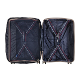Чемодан закрывается по периметру на двухстороннюю молнию, оснащены верхней ручкой, прорезиненными бесшумными колесами с поворотом на 360°, внутренним отделом для одежды и карманом на молнии, возможность увеличения объёма чемодана на 20% (за счёт молнии), встроенный кодовый замок TSA, максимальная высота выдвижной ручки 46 см. Объём 68/84 л., внутренний размер 57-42-26 см., вес 3,220 кг.