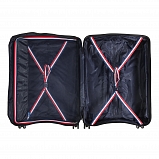 Чемодан закрывается по периметру на двухстороннюю молнию, оснащены верхней ручкой, прорезиненными бесшумными колесами с поворотом на 360°, внутренним отделом для одежды и карманом на молнии, возможность увеличения объёма чемодана на 20% (за счёт молнии), встроенный кодовый замок TSA, максимальная высота выдвижной ручки 37 см. Объём 106/127 л., внутренний размер 69-49-30 см., вес 3,945 кг.