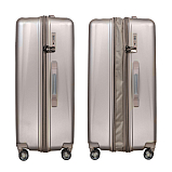 Чемодан закрывается по периметру на двухстороннюю молнию, оснащены верхней ручкой, прорезиненными бесшумными колесами с поворотом на 360°, внутренним отделом для одежды и карманом на молнии, возможность увеличения объёма чемодана на 20% (за счёт молнии), встроенный кодовый замок TSA, максимальная высота выдвижной ручки 37 см. Объём 106/127 л., внутренний размер 69-49-30 см., вес 3,945 кг.