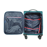 Закрывается по периметру на двухстороннюю молнию, оснащён верхней ручкой, четырьмя колёсиками 360°, внутри один отдел для одежды, один карман на молнии, одна техническая молния с бегунком, снаружи на передней стенке два кармана на молнии, максимальная высота выдвижной ручки 58 см, объём 25 л, внутренний размер 42-35-17 см, вес 2.070 кг.