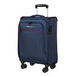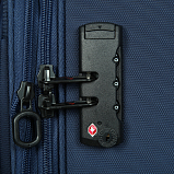 Закрывается по периметру на двухстороннюю молнию, оснащён верхней ручкой, четырьмя колёсиками 360°, внутри один отдел для одежды, один карман на молнии, одна техническая молния с бегунком, снаружи на передней стенке два кармана на молнии, возможность увеличения объёма чемодана на 20% (за счёт молнии), встроенный кодовый замок TSA, максимальная высота выдвижной ручки 58 см, объём 28 л, внутренний размер 44-35-18 см, вес 2.680 кг.