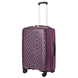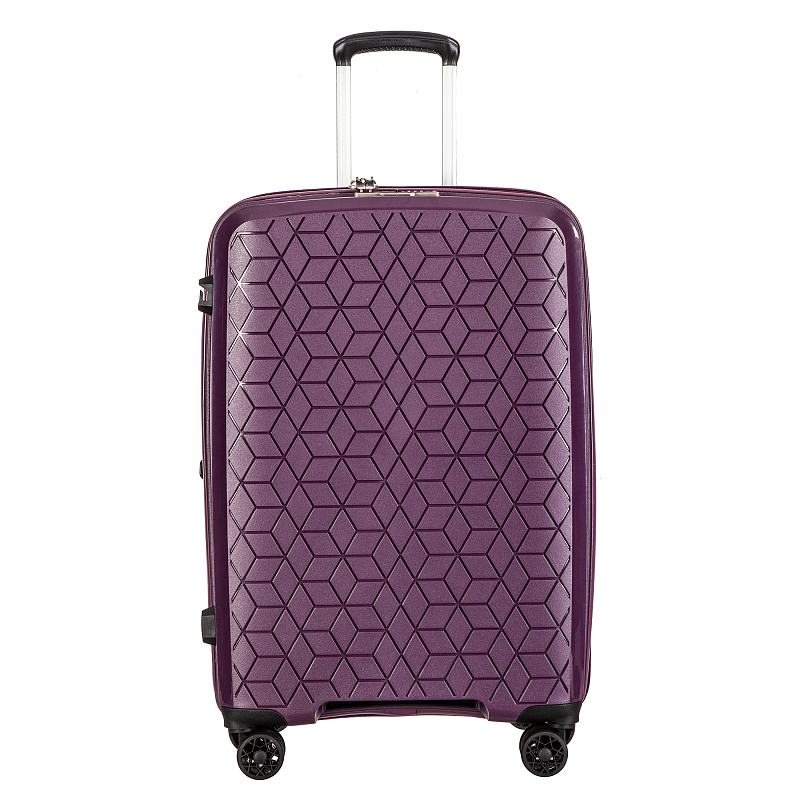Фиолетовый пластиковый чемодан среднего размера (M). Коллекция: Verage «Diamond». Выполнен из полипропилена - материала чрезвычайно прочного и долговечного. Чемодан оснащён двойной молнией безопасности, что препятствует вскрытию багажа, внутренним отделом максимальной вместимости с перекрёстными лямками и разделителем для одежды, возможностью расширения кабины чемодана (функцией невидимого расширения), выдвижной телескопической ручкой с фиксатором и регулировкой в нескольких положениях, верхней и боковой ручками для удобного подъёма и переноски, бесшумными колёсами с поворотом на 360°, кодовым замком TSA. Размеры: 25*(M) (69-45-28 см. 4.225 кг).