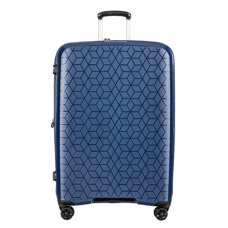 Большой семейный чемодан размера (L) из пластика синего цвета. Коллекция: Verage «Diamond». Выполнен из полипропилена - материала чрезвычайно прочного и долговечного. Чемодан оснащен двойной молнией безопасности, что препятствует вскрытию багажа, внутренним отделом максимальной вместимости с перекрёстными лямками и разделителем для одежды, возможностью расширения кабины чемодана (функцией невидимого расширения), выдвижной телескопической ручкой с фиксатором и регулировкой в нескольких положениях, верхней и боковой ручками для удобного подъёма и переноски, бесшумными колёсами с поворотом на 360°, кодовым замком TSA. Размеры: 29*(L) (78-53-32 см. 5,445 кг).