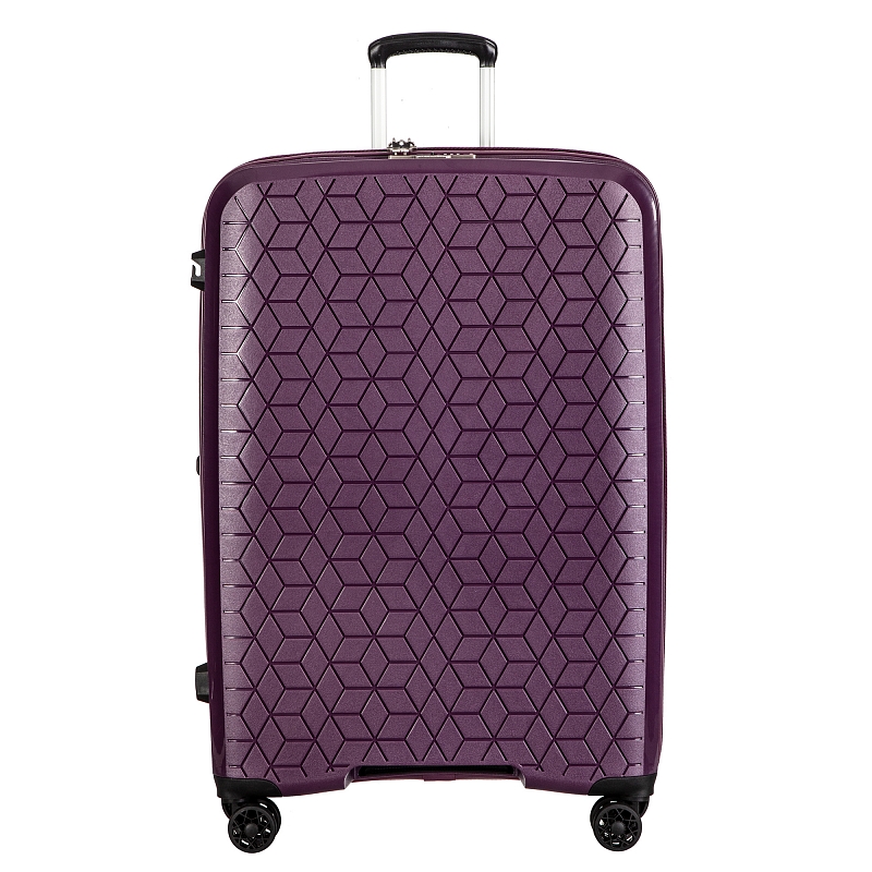 Большой семейный чемодан размера (L) из пластика фиолетового цвета. Коллекция: Verage «Diamond». Выполнен из полипропилена - материала чрезвычайно прочного и долговечного. Чемодан оснащен двойной молнией безопасности, что препятствует вскрытию багажа, внутренним отделом максимальной вместимости с перекрёстными лямками и разделителем для одежды, возможностью расширения кабины чемодана (функцией невидимого расширения), выдвижной телескопической ручкой с фиксатором и регулировкой в нескольких положениях, верхней и боковой ручками для удобного подъёма и переноски, бесшумными колёсами с поворотом на 360°, кодовым замком TSA. Размеры: 29*(L) (78-53-32 см. 5,445 кг).