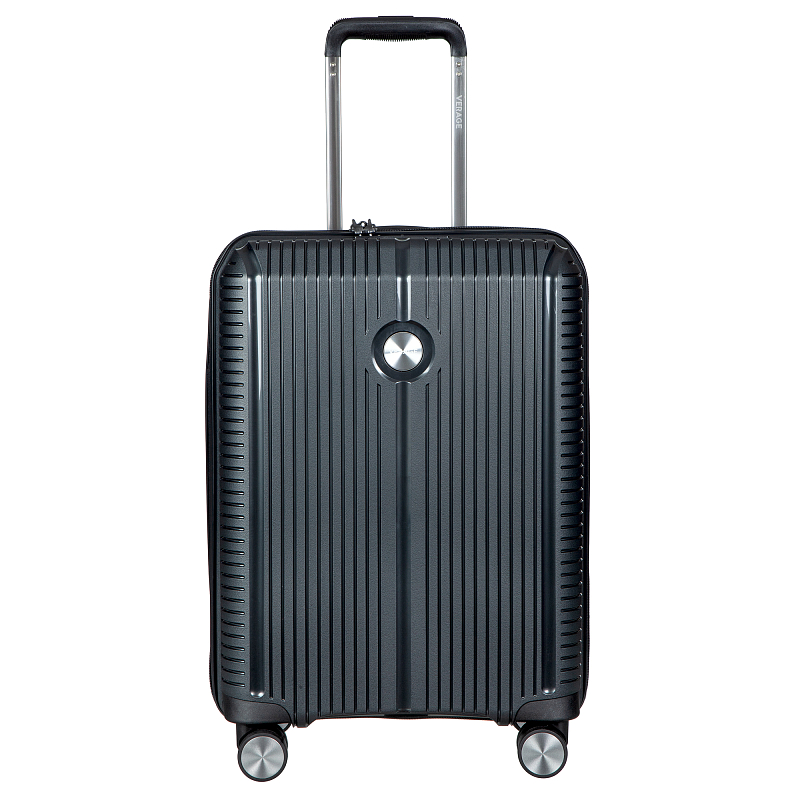 Чёрный чемодан для ручной клади, коллекция: Verage «Rome». Выполнен из полипропилена, материал чрезвычайно прочный и долговечный. Модель оснащена двойной молнией безопасности, что препятствует вскрытию багажа. Внутренним отделом максимальной вместимости с перекрёстными лямками и разделителем для одежды, возможностью увеличения объёма кабины чемодана (функцией невидимого расширения). Выдвижной телескопической ручкой с фиксатором и регулировкой в нескольких положениях, верхней ручкой для удобного подъёма и переноски. Бесшумными колёсами с поворотом на 360°, кодовым замком TSA. Размеры: 19*(S) (55-38-20 см. 2,500 кг),