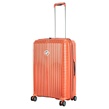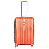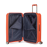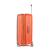 Оранжевый чемодан среднего размера (M), коллекция: Verage «Rome». Выполнен из полипропилена, материал чрезвычайно прочный и долговечный. Модель оснащена двойной молнией безопасности, что препятствует вскрытию багажа. Внутренним отделом максимальной вместимости с перекрёстными лямками и разделителем для одежды, возможностью увеличения объёма кабины чемодана (функцией невидимого расширения). Выдвижной телескопической ручкой с фиксатором и регулировкой в нескольких положениях, верхней и боковой ручками для удобного подъёма и переноски. Бесшумными колёсами с поворотом на 360°, кодовым замком TSA. Размеры: 24*(M) (66-44-27 см. 3,500 кг),