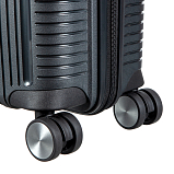 Чёрный чемодан для ручной клади, коллекция: Verage «Rome». Выполнен из полипропилена, материал чрезвычайно прочный и долговечный. Модель оснащена двойной молнией безопасности, что препятствует вскрытию багажа. Внутренним отделом максимальной вместимости с перекрёстными лямками и разделителем для одежды, возможностью увеличения объёма кабины чемодана (функцией невидимого расширения). Выдвижной телескопической ручкой с фиксатором и регулировкой в нескольких положениях, верхней ручкой для удобного подъёма и переноски. Бесшумными колёсами с поворотом на 360°, кодовым замком TSA. Размеры: 20*(S) (55-38-20 см. 2,500 кг),