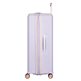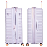 Большой лавандовый чемодан размера (L), коллекция: Verage «Rome». Выполнен из полипропилена, материал чрезвычайно прочный и долговечный. Модель оснащена двойной молнией безопасности, что препятствует вскрытию багажа. Внутренним отделом максимальной вместимости с перекрёстными лямками и разделителем для одежды, возможностью увеличения объёма кабины чемодана (функцией невидимого расширения). Выдвижной телескопической ручкой с фиксатором и регулировкой в нескольких положениях, верхней и боковой ручками для удобного подъёма и переноски. Бесшумными колёсами с поворотом на 360°, кодовым замком TSA. Размеры: 28*(L) (77-51-30 см. 4,500 кг).