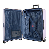 Большой семейный чемодан размера (L) из ABS-пластика лавандового цвета. Коллекция: Verage «Freeland». Выполнен из материала сплав ПК / АБС - чрезвычайно прочный и легкий. Модель оснащена двойной молнией безопасности, что препятствует вскрытию багажа. Внутренним отделом максимальной вместимости с перекрёстными лямками и разделителем для одежды. Возможностью расширения кабины чемодана за счёт молнии (функцией невидимого расширения). Выдвижной телескопической ручкой с фиксатором и регулировкой в нескольких положениях. Мягкой резиновой боковой выдвижной ручкой для удобного подъёма и переноса чемодана. Бесшумными прочными колёсами разного размера с поворотом на 360°, кодовым замком TSA. В комплекте одна сетчатая сумка для личных вещей, которую можно прикрепить к боковым фиксаторам.Размеры: 28*(L) (80 x 54 x 31,5 см. 5,350 кг).