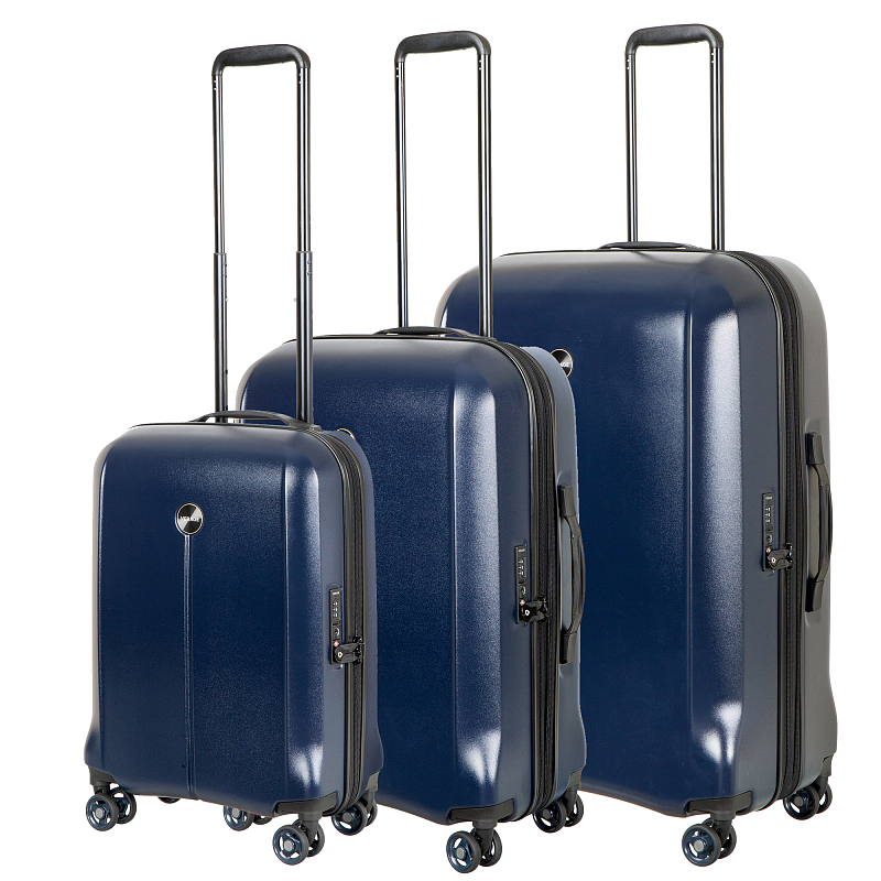 Комплект темно синих чемоданов из поликарбоната- материала чрезвычайно прочного, долговечного и легкого. Коллекция: Verage «Houston». Все модели оснащены двойной молнией безопасности, что препятствует вскрытию багажа. Внутренним отделом максимальной вместимости с перекрёстными лямками и разделителем для одежды, возможностью расширения кабины чемодана во всех размерах (функцией невидимого расширения). Выдвижной телескопической ручкой с фиксатором и регулировкой в нескольких положениях, верхней и боковой ручками для удобного подъёма и переноски (в размере M,L). Бесшумными двойными колёсами с поворотом на 360°, кодовым замком TSA. Комплект состоит из трёх размеров.
