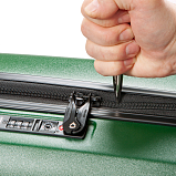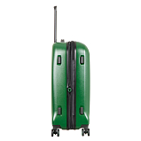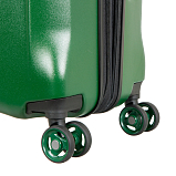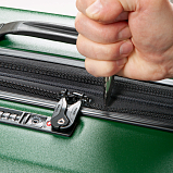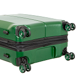 Чемодан из пластика темно зеленого цвета. Коллекция: Verage «Houston». Выполнен из поликарбоната - материала чрезвычайно прочного, долговечного и легкого. Чемодан оснащён двойной молнией безопасности, что препятствует вскрытию багажа. Внутри отдел максимальной вместимости с перекрёстными лямками и разделителем для одежды, с возможностью увеличения объёма чемодана за счёт молнии (функция невидимого расширения). Также чемодан оснащён выдвижной телескопической ручкой с фиксатором и регулировкой в нескольких положениях, верхней ручкой для удобного подъёма и временной переноски, бесшумными двойными колёсами с поворотом на 360°, кодовым замком TSA. Размер: 24*(M), вес - 3.255 кг.