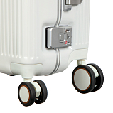 Белый пластиковый чемодан-тележка маленького размера (S), коллекция: Verage «Windsor». Выполнен из поликарбоната + ABS, материала прочного и долговечного. Модель закрывается на два кодовых замка TSA, что обеспечивает безопасность ваших вещей во время путешествий. Внутри вместительный отдел для одежды с прижимными ремнями, перегородка с тремя карманами на молниях, что облегчает упаковку и организацию вещей. Оснащён выдвижной телескопической ручкой с фиксатором и регулировкой в нескольких положениях, верхней и боковой ручками для удобного подъёма и переноски, бесшумными устойчивыми двойными колёсами диаметром 55 и 75 мм и поворотом на 360°, антибактериальной подкладкой 100D. Гарантия 3 года. Размеры: 19*(S) (55-38.5- 23 см., вес - 4.150 кг),