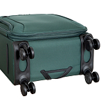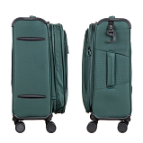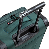 Чемодан из полиэстера тёмно-зелёного цвета. Коллекция: Verage «Toledo». Выполнен из полиэстера, устойчив к царапинам и воде. Чемодан оснащён двойной молнией безопасности, что препятствует вскрытию багажа. Внутри вместительное отделение с внутренним глубоким карманом и регулируемыми прижимными ремнями, с возможностью увеличения объёма чемодана за счёт молнии до 4 см.(функция невидимого расширения). Чемодан оснащён выдвижной телескопической ручкой с фиксатором и регулировкой в 4-х положениях, в ручке расположен фонарик с 3-мя режимами регулировки света. Также чемодан оснащён мягкой верхней ручкой для удобного подъёма и временной переноски, бесшумными 8-спиннерными колёсами с поворотом на 360°, что обеспечивает лучший баланс и лёгкое скольжение. Чемодан закрывается кодовым замком TSA. Снаружи на передней панели расположен большой карман и карман на молнии для билетов или мелких предметов. На задней стенке крепление на ручку чемодана, что даёт возможность зафиксировать чемодан поверх другого багажа. На боковой стенке карман и крючок для крепления питьевой бутылки. Размер: 19 (S). Вес: 2,640 кг.