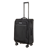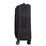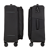 Чемодан из полиэстера чёрного цвета. Коллекция: Verage «Toledo». Выполнен из полиэстера, устойчив к царапинам и воде. Чемодан оснащён двойной молнией безопасности, что препятствует вскрытию багажа. Внутри вместительное отделение с внутренним глубоким карманом и регулируемыми прижимными ремнями, с возможностью увеличения объёма чемодана за счёт молнии до 4 см.(функция невидимого расширения). Чемодан оснащён выдвижной телескопической ручкой с фиксатором и регулировкой в 4-х положениях, в ручке расположен фонарик с 3-мя режимами регулировки света. Также чемодан оснащён мягкими верхней и боковой ручками для удобного подъёма и временной переноски, бесшумными 8-спиннерными колёсами с поворотом на 360°, что обеспечивает лучший баланс и лёгкое скольжение. Чемодан закрывается кодовым замком TSA. Снаружи на передней панели расположен большой карман и карман на молнии для билетов или мелких предметов. На боковой стенке карман и крючок для крепления питьевой бутылки. Размер: 24 (M). Вес: 3,265 кг.