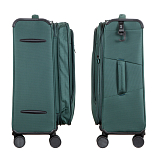 Чемодан из полиэстера тёмно-зелёного цвета. Коллекция: Verage «Toledo». Выполнен из полиэстера, устойчив к царапинам и воде. Чемодан оснащён двойной молнией безопасности, что препятствует вскрытию багажа. Внутри вместительное отделение с внутренним глубоким карманом и регулируемыми прижимными ремнями, с возможностью увеличения объёма чемодана за счёт молнии до 4 см.(функция невидимого расширения). Чемодан оснащён выдвижной телескопической ручкой с фиксатором и регулировкой в 4-х положениях, в ручке расположен фонарик с 3-мя режимами регулировки света. Также чемодан оснащён мягкими верхней и боковой ручками для удобного подъёма и временной переноски, бесшумными 8-спиннерными колёсами с поворотом на 360°, что обеспечивает лучший баланс и лёгкое скольжение. Чемодан закрывается кодовым замком TSA. Снаружи на передней панели расположен большой карман и карман на молнии для билетов или мелких предметов. На боковой стенке карман и крючок для крепления питьевой бутылки. Размер: 24 (M). Вес: 3,265 кг.