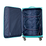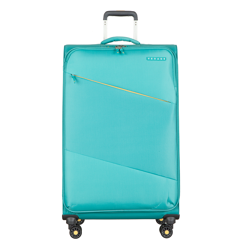 Облегчённый семейный чемодан мятного цвета. Коллекция Verage "Bristol". Изготовлен из прочного водонепроницаемого полиэстера, стойкого к царапинам. Внутри вместительное отделение для одежды с регулируемыми прижимными ремнями и сетчатый карман на молнии. Чемодан оснащён двойной молнией, выдвижной телескопической ручкой с фиксатором в четырёх положениях, мягкими верхней и боковой ручками для удобного подъёма, бесшумными колёсами с поворотом на 360°, что обеспечивает лучший баланс и лёгкое скольжение. Снаружи на лицевой стороне расположены два кармана на молниях для билетов и мелких предметов. Внутри отделка антибактериальным материалом. Фурнитура выполнена из экологичного материала. Гарантия 3 года. Размер: 28 (L). Вес: 2,5 кг. Объём: 105 л.