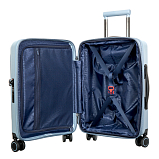 Чемодан для ручной клади из пластика голубого цвета. Коллекция: Verage «Greenwich». Выполнен из материала R-PET - экологически чистый и более прочный и гибкий, чем ABS и PC. Для производства такого материала не используются новые ресурсы Земли. Изготовление материала только из переработанного пластика. На изготовление этого чемодана использовалось 60 пластиковых бутылок. Чемодан оснащён двойной молнией безопасности, что препятствует вскрытию багажа. Внутри отдел максимальной вместимости с перекрёстными лямками и разделителем для одежды с сетчатым карманом на молнии. Подкладка 150D R-PET. Снаружи на передней стенке отделение на молнии, в котором карман для ноутбука/iPad или документов. Также чемодан оснащён выдвижной телескопической ручкой с фиксатором и регулировкой в нескольких положениях, верхней и боковой ручкой для удобного подъёма и временной переноски, на боковой ручке и боковых опорах можно закрепить сумку и зонт. А так же бесшумными, прочными двойными колёсами с поворотом на 360°, кодовым замком TSA. Имеется возможность увеличения объёма кабины чемодана с 33 L до 41 L (функция невидимого расширения)+5 см. Размер: 19*(S), Вес: 3,45 кг.