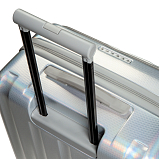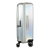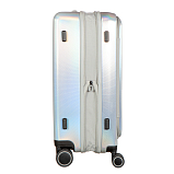 Чемодан из пластика, цвет серебристый металлик. Коллекция: Verage «Greenwich». Выполнен из материала R-PET - экологически чистый и более прочный и гибкий, чем ABS и PC. Для производства такого материала не используются новые ресурсы Земли. Изготовление материала только из переработанного пластика. На изготовление этого чемодана использовалось 90 пластиковых бутылок. Чемодан оснащён двойной молнией безопасности, что препятствует вскрытию багажа. Внутри отдел максимальной вместимости с перекрёстными лямками. Имеется сетчатый карман на молнии. Подкладка 150D R-PET. Также чемодан оснащён выдвижной телескопической ручкой с фиксатором и регулировкой в нескольких положениях, верхней и боковой ручкой для удобного подъёма и временной переноски, на боковой ручке и боковых опорах можно закрепить сумку и зонт. А так же бесшумными, прочными двойными колёсами с поворотом на 360°, кодовым замком TSA. Имеется возможность увеличения объёма кабины чемодана с 67 L до 83 L (функция невидимого расширения)+6 см. Размер: 24*(M), Вес: 4,35 кг.