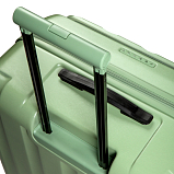 Чемодан из пластика зеленого цвета. Коллекция: Verage «Greenwich». Выполнен из материала R-PET - экологически чистый и более прочный и гибкий, чем ABS и PC. Для производства такого материала не используются новые ресурсы Земли. Изготовление материала только из переработанного пластика. На изготовление этого чемодана использовалось 120 пластиковых бутылок. Чемодан оснащён двойной молнией безопасности, что препятствует вскрытию багажа. Внутри отдел максимальной вместимости с перекрёстными лямками. Имеется сетчатый карман на молнии. Подкладка 150D R-PET. Также чемодан оснащён выдвижной телескопической ручкой с фиксатором и регулировкой в нескольких положениях, верхней и боковой ручкой для удобного подъёма и временной переноски, на боковой ручке и боковых опорах можно закрепить сумку и зонт. А так же бесшумными, прочными двойными колёсами с поворотом на 360°, кодовым замком TSA. Имеется возможность увеличения объёма кабины чемодана с 114 L до 137 L  (функция невидимого расширения)+6 см. Размер: 30*(L), Вес: 5,8 кг.