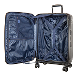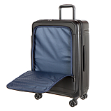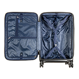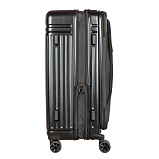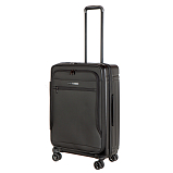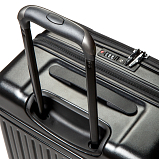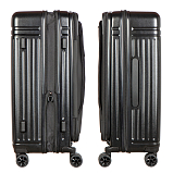 Дорожный чемодан, черного цвета. РАСШИРЯЕМЫЙ: 24-28" с экспандером. МАТЕРИАЛ Передняя часть: полиэстер 150D с ПУ-покрытием на поверхности Задняя часть: PP, подкладка 210D с ПУ-покрытием. Верхняя и боковая ручки из пластика (на 19" без боковой ручки), черного цвета, пластик. Основная молния #08 черного цвета, молния #07 для переднего кармана в цвете корпуса. Встроенный замок TSA с комбинацией, черного цвета.ТЕЛЕЖКА Внутри алюминиевая, снаружи тележка из железа с черным покрытием, пластик черного цвета. Двойные колеса, пластик черного цвета с ободом в цвете корпуса. 24“:45*29(+5)*68.5см/3.9кг/73(86л)