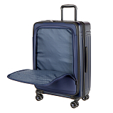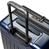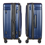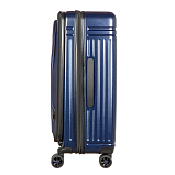 Дорожный чемодан, синего цвета. РАСШИРЯЕМЫЙ: 24-28" с экспандером. МАТЕРИАЛ Передняя часть: полиэстер 150D с ПУ-покрытием на поверхности Задняя часть: PP, подкладка 210D с ПУ-покрытием. Верхняя и боковая ручки из пластика (на 19" без боковой ручки), черного цвета, пластик. Основная молния #08 черного цвета, молния #07 для переднего кармана в цвете корпуса. Встроенный замок TSA с комбинацией, черного цвета.ТЕЛЕЖКА Внутри алюминиевая, снаружи тележка из железа с черным покрытием, пластик черного цвета. Двойные колеса, пластик черного цвета с ободом в цвете корпуса. 24“:45*29(+5)*68.5см/3.9кг/73(86л)