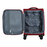 Закрывается по периметру на двухстороннюю молнию, оснащён верхней ручкой, четырьмя колёсиками 360°, внутри один отдел для одежды, один карман на молнии, одна техническая молния с бегунком, снаружи на передней стенке кармана на молнии, возможность увеличения объёма чемодана на 20% (за счёт молнии), встроенный кодовый замок, максимальная высота выдвижной ручки 58 см, объём 50 л, внутренний размер 45-36-19 см, вес 2.740 кг.