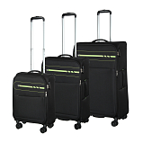 Комплект состоит из трех чемоданов высотой 80, 68, 56 см, весом 3.790, 3.280, 2.710 кг. Все модели закрываются по периметру на двухстороннюю молнию, оснащены верхней ручкой, четырьмя колёсиками с поворотом на 360°, внутренним отделом для одежды и карманом на молнии, возможность увеличения объёма чемодана на 20% (за счёт молнии), встроенный кодовый замок, максимальная высота выдвижной ручки 36, 47, 58 см.