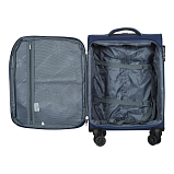 Закрывается по периметру на двухстороннюю молнию, оснащён верхней ручкой, четырьмя колёсиками 360°, внутри один отдел для одежды, один карман на молнии, одна техническая молния с бегунком, снаружи на передней стенке кармана на молнии, возможность увеличения объёма чемодана на 20% (за счёт молнии), встроенный кодовый замок, максимальная высота выдвижной ручки 58 см, объём 50 л, внутренний размер 47-36-19 см, вес 2.710 кг.
