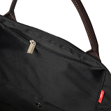 Внутри одно большое отделение, в котором расположен кармашек для мелких предметов. Закрывается на молнию и на клапан на кнопке. Компактно складывается до размеров 13 х 23 см.